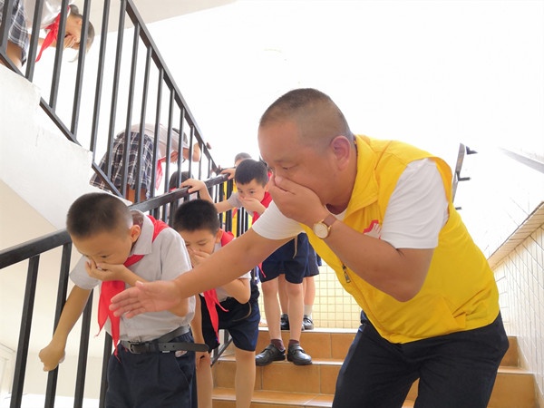 为确保这次演练活动顺利进行,学校制定了详细的消防疏散演练方案,对各宿舍楼层逃离的路线及每位生活老师的职责、每层楼梯口的值班老师安排等工作都作了明确的规定。当日下午13:40分,当听到学校的警报声后,学生们在生活老师的引导下,用手或毛巾捂住口鼻,紧张、有序、快速地撤离宿舍楼,按预定的疏散路线撤离到安全位置并迅速集合,整场演练活动紧张、有序,整个演练活动达到了预期目标。