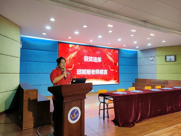 仪式伊始,由上一学年优秀师徒卢秀芳、邱妮娅两位老师发言,详细讲述了师徒二人在交流和相互学习过程中的所得所获,师父的用心指导、倾囊相授,徒弟的虚心学习、开拓创新,最终达到了“师徒相长”。