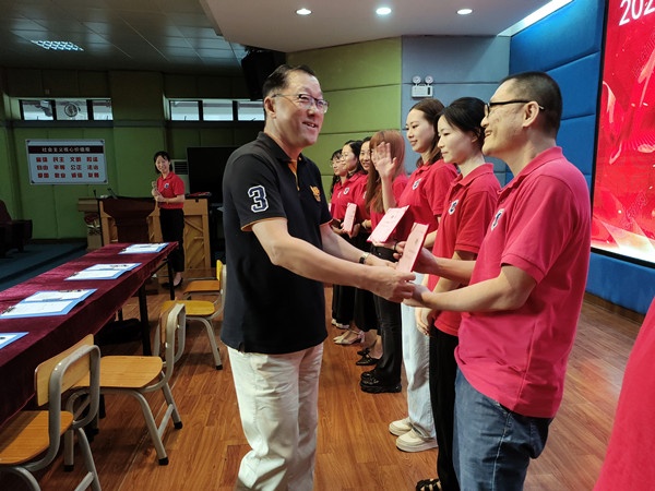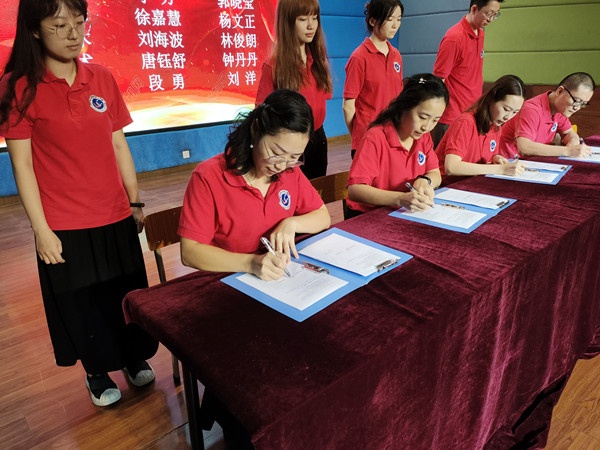 在主持人公布师徒结对的名单后,师徒们郑重地在协议书上签下了自己的名字。提笔之间,徒弟签下的是承诺和决心,师父签下的是使命和期盼,一份份承诺书承载了师徒携手共进的满满期盼。刘训强校长为师父们颁发聘书,这一份份聘书承载着学校“聚沙成塔”的希望!