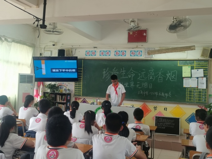 5月30日下午,学校通过主题班会,从香烟的主要成分、吸烟导致的疾病、二手烟、三手烟的危害和戒烟的好处等方面,对全校师生进行了详尽的宣传,同时给大家介绍了控烟技能与戒烟方法。希望通过此次主题活动,加强师生对于烟草危害的认识,唤起大家维护身心健康的意识,倡导健康生活,绿色生活,为创建书香校园,添砖加瓦。此次主题班会的成功开展,不仅使学生们了解了吸烟的危害,很大程度上也增强了学生的健康意识,以及对生命的更加敬畏和珍爱,因此,这次主题班会无疑也是一堂有意义的生命教育课。