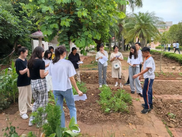 各个班级的劳动基地种植的蔬菜种类繁多,有番薯叶、生菜、辣椒、空心菜、茄子、番茄等几种蔬菜,还有龙葵、长寿花等植物。平时,老师带着孩子们亲身参与到种植活动中,从收集种子,耕地、播种到浇水,让同学们通过自己的劳动感知植物的生长,体验收获的快乐。
