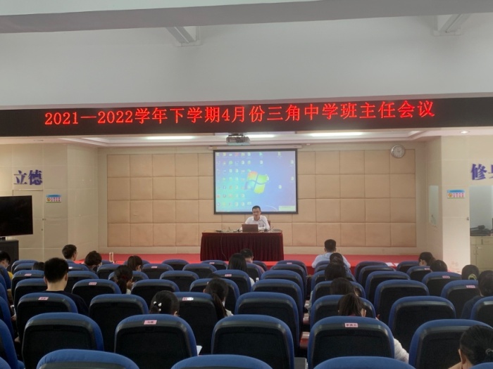 不负春光争朝夕,扬帆奋进正当时。为加强学校德育工作规范化、制度化管理,进一步提高德育工作的实效性,确保德育工作有条不紊地开展,4月7日下午,三角中学召开了2021—2022学年下学期4月份班主任工作例会,学校全体班主任出席了本次会议。
