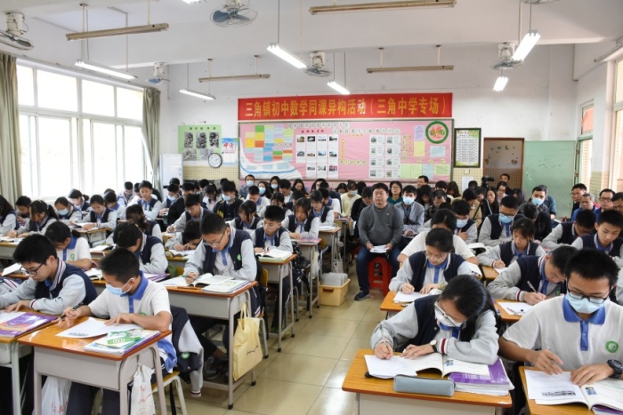 为提高全镇初中数学教研活动的实效性,3月7日下午,三角镇初中数学同课异构活动在三角中学如期举行。参加本次活动的有中山市三角中学、中山市沙栏初级中学数学科组成员,活动特别邀请三角镇教研员袁震老师莅临指导。