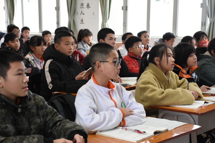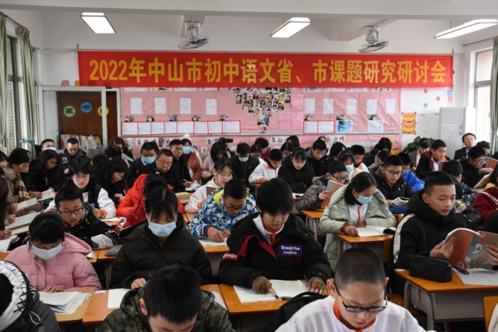 教学质量是学校办学的生命线,高效的课堂是学生成长的重要保障。为不断提升教师的课堂教学能力和教学水平,进一步探讨核心素养视域下的初中语文深度学习,深化课堂教学改革,提升学生思维能力,促进教师的专业发展,展示三角中学“自主互助?高效协作”课堂教学的成效,2月22日上午,中山市初中语文省、市课题研究研讨会在三角中学举行。中山市语文教研员郭跃辉、三角镇教育和体育事务中心副主任梁文、中山市省市课题组15位成员以及三角镇部分初中语文教师参加了本次研讨会。