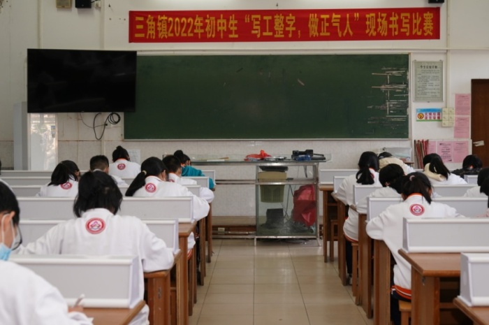 笔墨飘香润心灵,横竖撇捺透素养。为进一步传承和发扬中国书法文化,激发学生对祖国灿烂文化和语言文字的热爱之情,进一步引起学生对书写的高度重视,培养他们正确的书写习惯,三角中学初一年级参加三角镇“写工整字,做正气人”现场书写比赛。