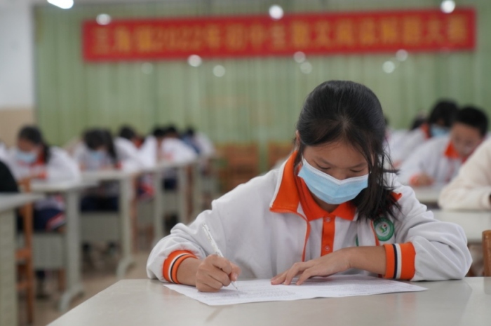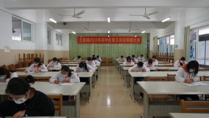 为进一步激发学生的阅读兴趣,提高学生的中考阅读解题能力,促进学生知识水平和人文修养的提高,三角中学组织初二年级学生参加三角镇散文阅读解题能力竞赛活动。