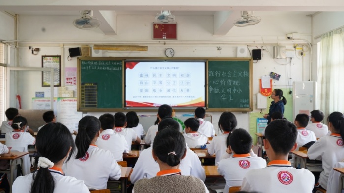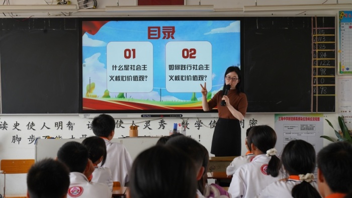 班会课上,班主任们从理论实际出发,从什么是社会主义核心价值观和如何践行社会主义核心价值观两个方面对社会主义核心价值观基本内容进行图文并茂地生动讲解,并深刻阐释社会主义核心价值观的内涵与意义,帮助学生熟记于心,践之于行。