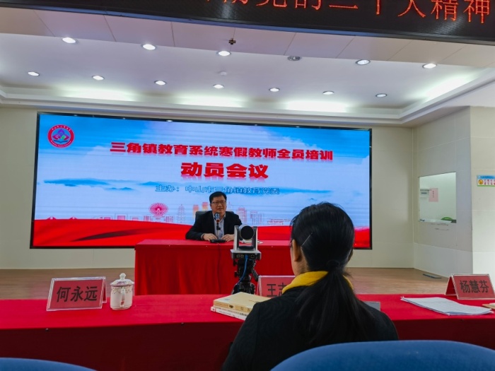 为进一步贯彻党的教育方针,更好地提升全镇中小学教师的专业发展水平及师德修养,使之适应新形势的发展,提升教师职业道德素养,强化育人使命感和责任感,全面推进素质教育,提高教育教学质量。2023年2月3日下午,三角镇在三角中学报告厅(主会场)召开三角镇教育系统寒假教师全员培训动员会议。三角镇党委副书记何永远、镇教体局领导、镇教体中心全体人员、三角中学教师在主会场参加本次培训动员大会,其他学校教师在本校分会场,通过视频直播方式参加会议。会议由杨慧芬局长主持。