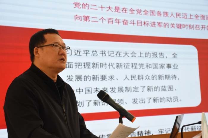 会议的第二项议程,由三角中学支部书记温结联为全体教师上了一节师德教育课。会上,温校指出,党的二十大是在全党全国各族人民迈上全面建设社会主义现代化国家新征程、向第二个百年奋斗目标进军的关键时刻召开的一次十分重要的大会,要深入学习宣传贯彻报告精神,牢记新时代新征程党的光荣使命和历史任务,团结带领全国各族人民全面建成社会主义现代化强国、实现第二个百年奋斗目标,以中国式现代化全面推进中华民族伟大复兴。