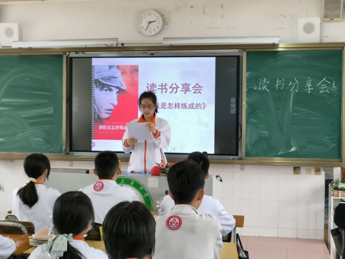 八年级各班同学代表分享的是名著《钢铁是怎样炼成的》,他们用心感悟,用独特的语言与视角去解读心目中对于名著《钢铁是怎样炼成的》的阅读感受,同学们通过走近主人公保尔?柯察金,认识保尔,从他的人生历程以及钢铁般的精神中,汲取奋发向上的成长力量。