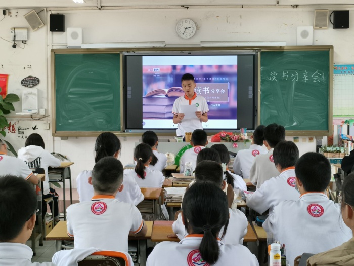 本次活动由七、八年级每班推荐3位同学在班会课上进行分享,分享内容包括阅读分享、名著推介等,充分反映健康向上的精神面貌和社会风气,时间为3-5分钟。