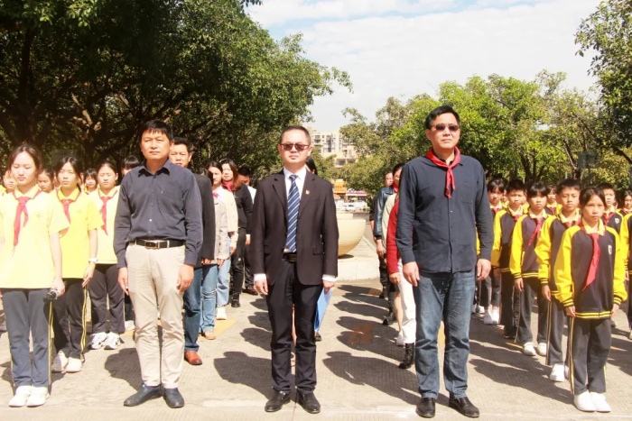 11月12日11点12分,中山市三鑫学校校长黄建军、校监杨要武、初中部校长杜业富、德育副校长江叔良等管理人员及学生代表,在孙中山先生铜像前隆重举行纪念孙中山先生诞辰155周年活动,缅怀他为民族独立、社会进步、人民幸福建立的不朽功勋,弘扬他的革命精神和崇高品德,以此激励全校师生为实现中华民族伟大复兴而团结奋斗。