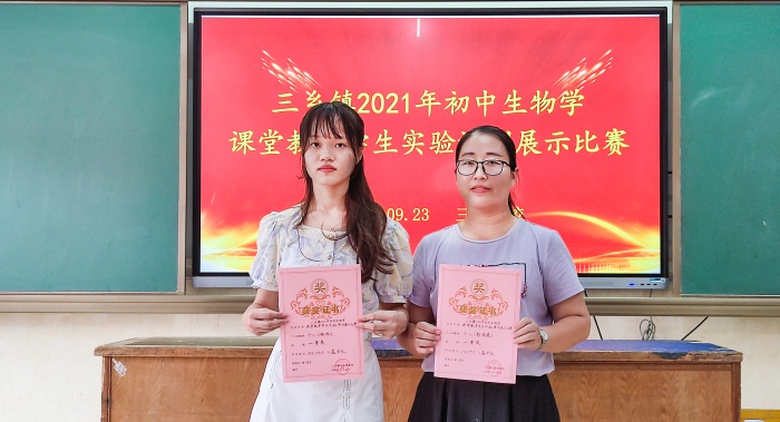 经过激烈的角逐,评委们对参赛教师们进行综合评比打分,评出了一、二等奖。比赛结束后,三乡镇理化生中心教研组组长陈春华老师为各位获奖选手颁发荣誉证书。获奖情况如下: