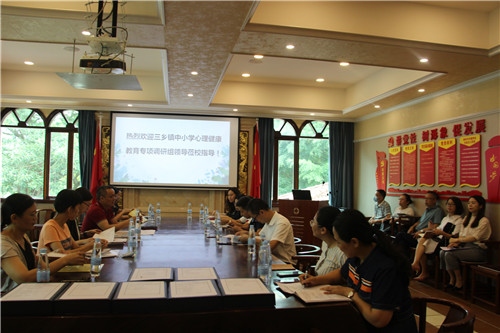 为进一步了解和指导学校心理健康教育工作,有效防范心理危机事件,6月23日上午,三乡镇教工委副书记梁添带,三乡镇团委副书记、三乡镇少工委总辅导员林雪萍一行对中山市纪中三鑫双语学校心理健康专项工作进行调研。三鑫学校总校长沈伟忠、初中部副校长兼初二年级校长黄建军以及各年级校长等管理人员热情接待调研组。调研组领导通过听取汇报、推门听课、查阅资料、实地察看场室、学生问卷等方式,对三鑫学校心理健康教育专项工作进行了全方位的评估。