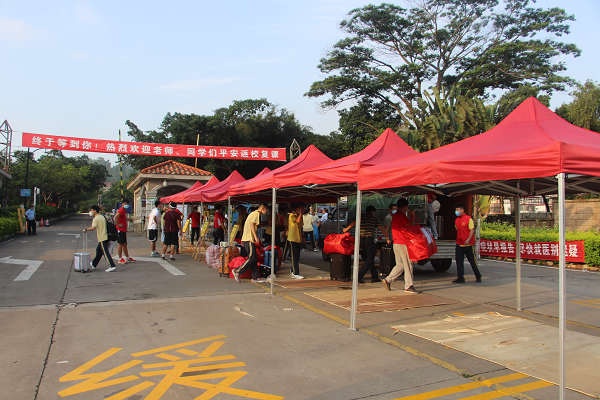 第二批返校复课学生三千余人,全部按计划分批错峰返校。初中两个年级分上下午在学校正门、西门、侧门、后门四个入口分班错峰返校。每一个班级学生所对应的返校通道、返校时间段及其他各项要求已提前通过给家长发布的《告家长书》逐一传达到每一位学生及其家长,真正做到错峰、分时、分散返校。为了让家长无后顾之忧,将学生送到校门口立刻安心离校,学校还组织了部分管理人员、初中教师、生活老师、后勤人员以及部分学生作为志愿者,在各个入口帮助返校学生卸行李、搬行李,引导学生检测体温等,完成好学生平安复课的每一道安全关卡。