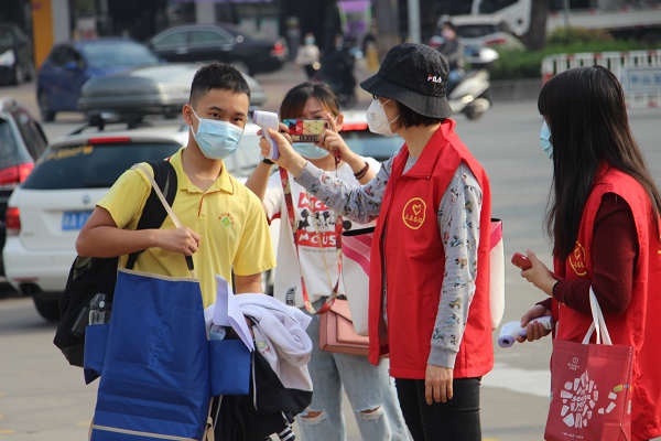 今天计划分批错峰返校的共有1185人,为避免人员聚集,学校提前发布《告家长书》,分别开设正门、西门、侧门、后门四个通道,并将每一个班级学生所对应的返校通道、返校时间段及其他各项要求逐一传达到每一位学生及其家长,真正做到错峰、分时、分散返校。学校还组织了部分管理人员、初三教师、生活老师、后勤员工以及每班10名学生作为志愿者,帮助学生卸行李、搬行李,引导学生检测体温,对学生行李进行消毒,安排学生进住寝室,为学生们安全返校筑起第一道防线。保证学生安全、平稳、有序进入校园。