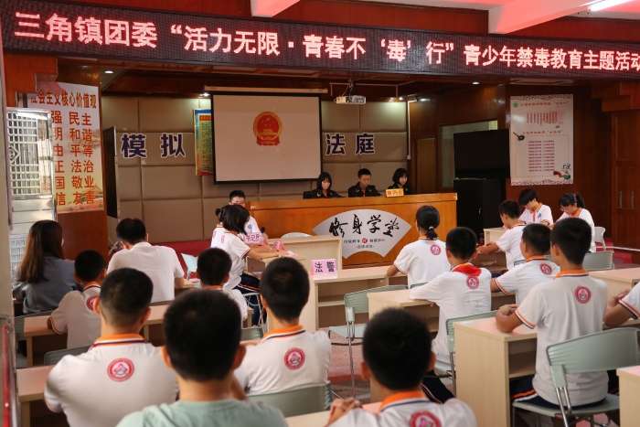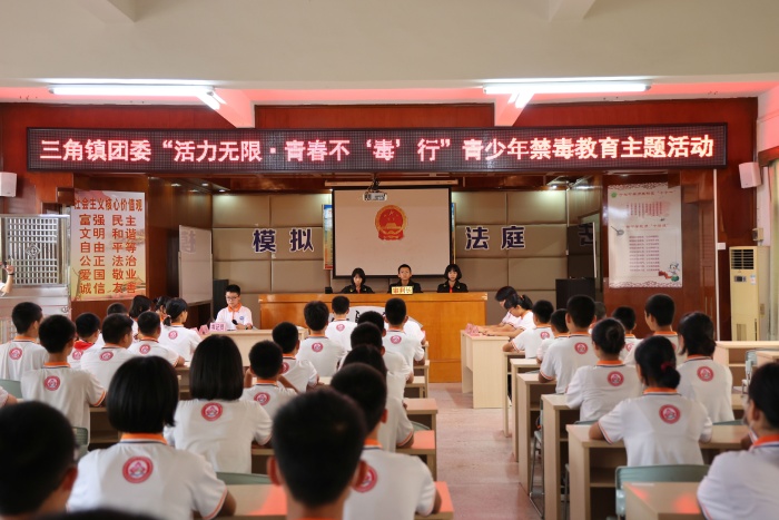 为深入开展毒品预防宣传教育,在青少年群体内形成自觉远离毒品的有效屏障,6月21日下午,沙栏中学联合三角镇团委积极开展了“活力无限·青春不‘毒’行”——青少年禁毒教育主题活动”。本次活动旨在加强学校禁毒宣传教育工作,不断增强学生识毒、防毒、拒毒的意识和能力,提高学生自我保护意识。