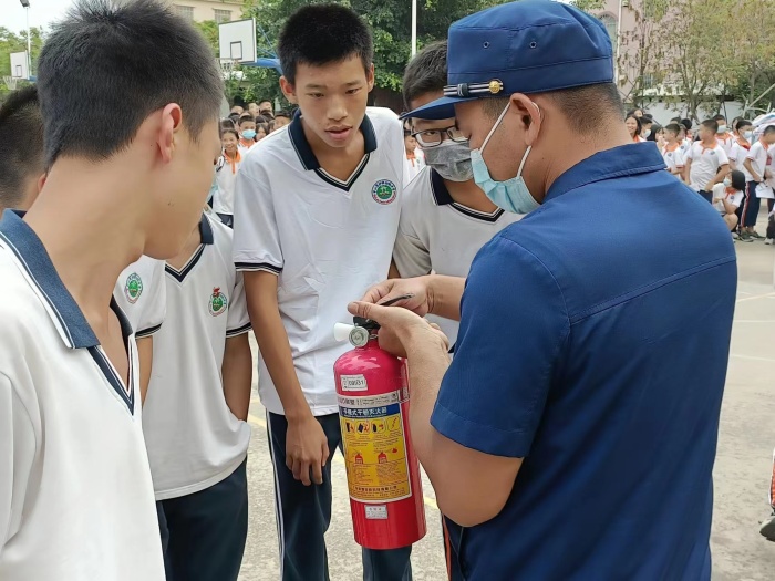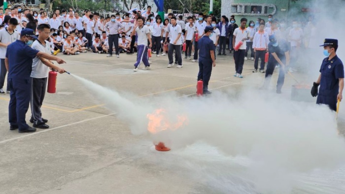 为了使全体师生了解消防基础知识,提高安全防范意识,增强自我保护能力,掌握对突发火灾的应变、逃生技能,确保师生生命安全及财产安全,沙栏中学联合三角镇消防大队于5月9日进行了一次“应急疏散演练和消防安全培训”。内容包括:模拟火情、学生逃生、讲解灭火器知识、实际操作灭火器等。