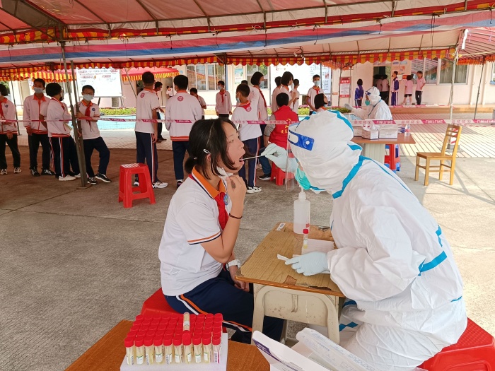 近日,新冠疫情在国内省内有多点散发迹象,市内周边镇区也出现感染个案,疫情防控形势严峻。为确保全校师生生命健康安全,按照上级要求,学校组织全体师生进行核酸检测,筑牢疫情防控防线。