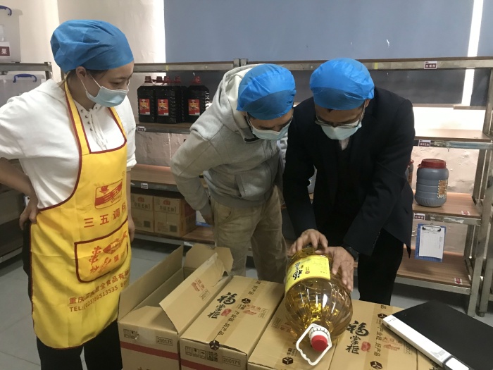 实地了解厨房、仓储和制作环节情况后,上午10点45分,检查组杨庆新主任就监督检查情况同餐饮公司负责人进行了深入的交流,督促该公司严格落实检验、检测的管理责任,明确要求用餐配送公司制定检验、检测计划,定期对大宗食品原料、加工制作环境等自行或委托具有资质的第三方机构进行检验、检测。同时,对发现的其它问题及时提出了改进意见和建议,并要求该公司根据疫情防控形势做好配餐服务人员调整,加强对配餐服务人员的监管,严格查验相关工作人员的健康情况。