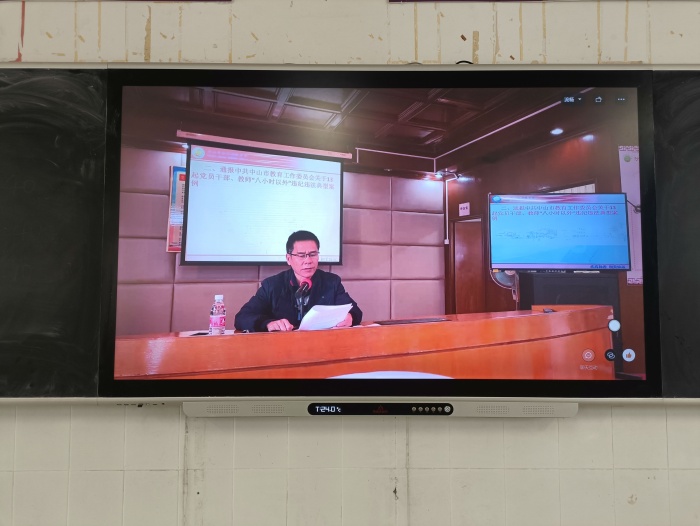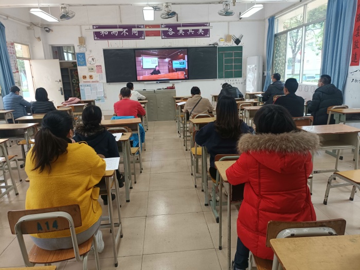 1月15日下午,沙栏中学召开2021--2022第一学期学校工作总结会议,由于疫情原因,本次教师会议在线上举行。教师们按级组分批,在不同课室收看。会议由学校校长梁炳华主持。梁校长首先和大家回顾了本学期的工作成绩,肯定了老师们为学校发展付出的艰辛劳动。接着,由学校各部门负责人进行工作汇报。