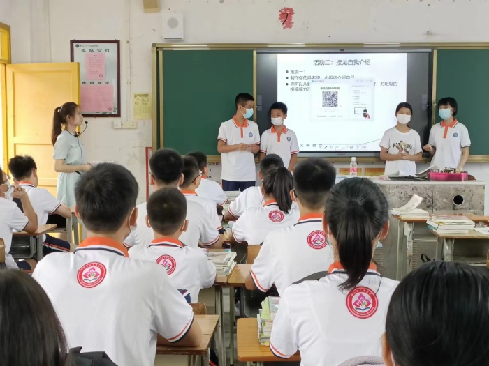 8月30日早上,全体新生测体温进校,集中操场分班列队,然后由班主任带到班级。在班上,班主任先让每个同学做自我介绍,促进学生之间相互认识。接着召开了主题为《适应初中新生活》的班会,对班级值日清洁区域、防疫、就餐、出操和班级规则等纪律性问题进行详细、耐心的讲解。