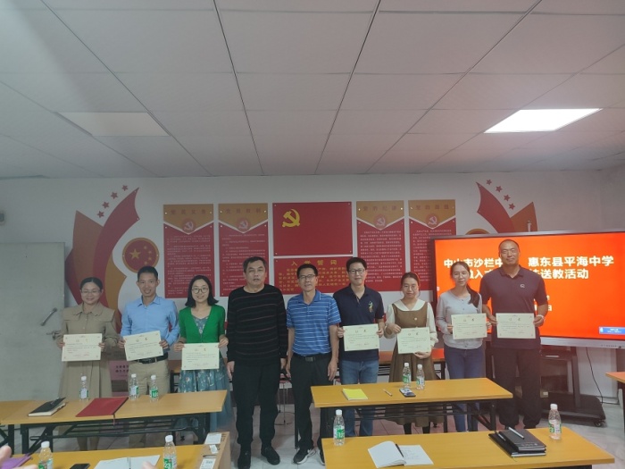 送上爱心,带上祝福,支教路上,成绩斐然。本次慰问活动,通过送教与交流分享,增进了沙栏中学与平海中学之间的友谊,带去了沙中全校师生对支教教师的关心和诚挚问候,调动了支教教师的积极性,为学校间互相学习、互相交流奠定了基础。