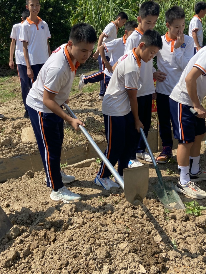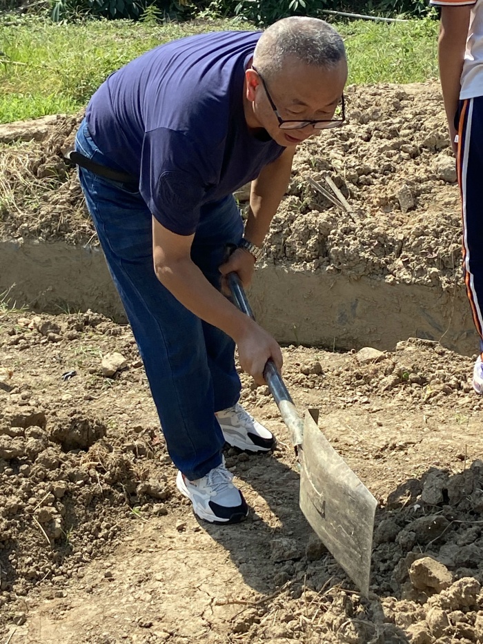 最后,部分师生进入劳动基地,用铲子来松土和平整土地,亲身体验劳作的过程。