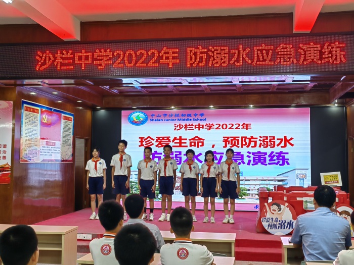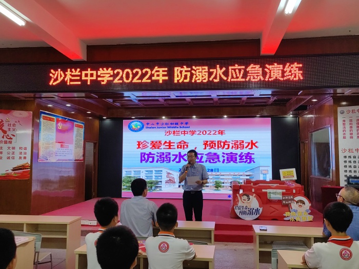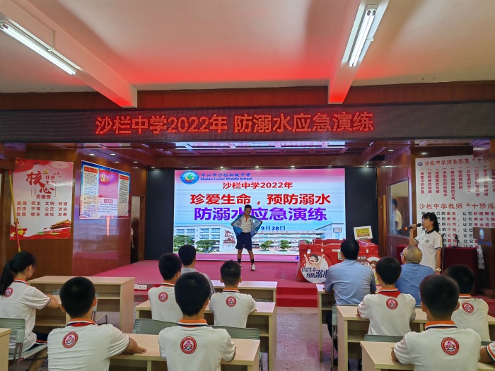 为了提高师生防溺水安全意识,强化防溺水安全教育。9月28日下午,沙栏中学开展2022年防溺水应急演练活动。