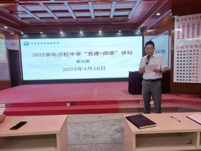 坚守教育初心,争当新时代“四有”好教师。沙栏中学一直保持着争当优秀的传统,也一直保留着修炼师德的平台。为进一步弘扬师德师风正能量,提高广大教职工职业道德修养,强化他们的育人使命和责任感,提升教职工师德师风整体水平,4月19日下午,沙栏中学4月份的“师德讲坛”如期开讲。