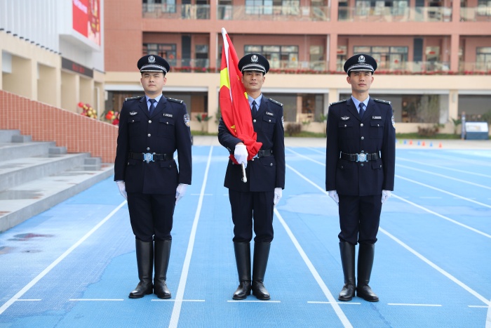 升旗仪式上,特警官兵身姿挺拔、步伐矫健,用昂扬威武的姿态振奋了全体师生的精气神。全体师生以肃立的姿态、灿烂的笑脸迎接新学期的第一缕阳光。