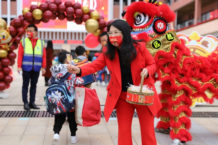 舞狮贺岁,瑞虎迎春。2月14日,中山市香山小学一派喜气洋洋,郑凤姚校长带领全体行政为快乐返校的师生们派发棒棒糖,希望大家新年棒棒棒,不负好春光!