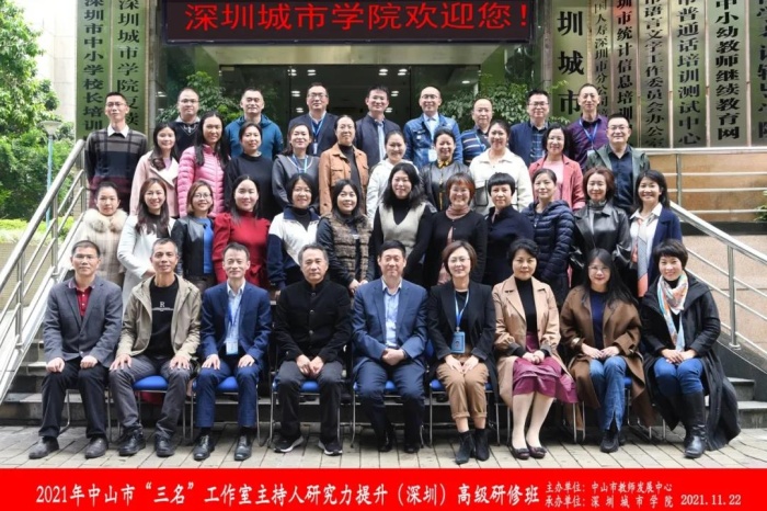 11月22-25日,广东省(中山)郑凤姚名校长工作室一行14人联合中山市教师发展中心组织的中山市“三名”工作室主持人一同前往深圳进行为期四天的“研究力提升”主题深度研修学习。成员们首先在深圳城市学院进行了为期两天的讲座培训。