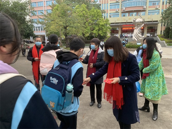 新的一年,新气象,溪中行政领导班子派开学利是啦!戴着红红火火的红围巾,带着新春的祝福在校门口迎接返校的学子们
