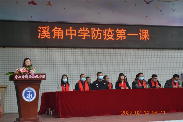 新学期,新希望。中山市龙山中学教育集团溪角中学2021-2022学年第二学期开学典礼在学校田径场举行。