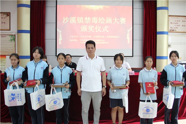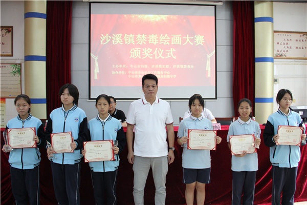 启动仪式上还举行了沙溪镇禁毒绘画大赛颁奖仪式。本次大赛,同学们以生动活泼、直观大胆的笔法,将毒品的危害描绘于纸上、融入于画中,一幅幅色彩斑斓、主题鲜明的图画形式多样地展示了毒品的危害、共同表达着同学们远离毒品的决心。在几百幅作品中,吴书婷、陈敏萱、王咪妮、蒋其萱、王雅丽、周晓盈等同学的作品脱颖而出,荣获优秀奖;董家铜、黄思颖、谢子颖、王绍铭、李家璇、雷晓晴 、庞森、赵梓伶、陈湘、刘艺珊被评为小小艺术家。