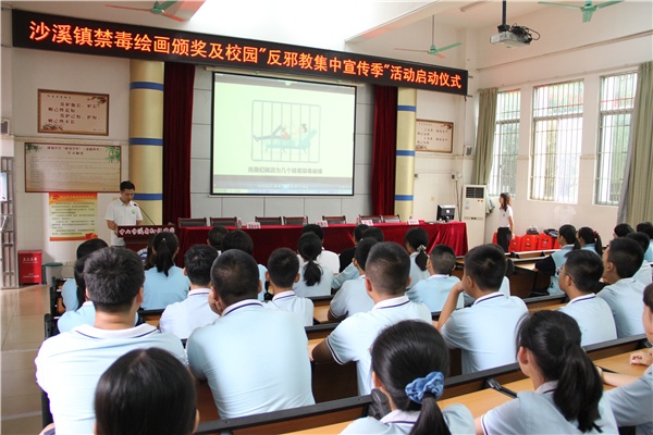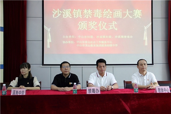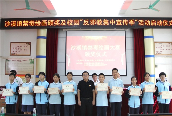 10月15日上午,由沙溪镇禁毒办、沙溪镇妇联、溪角中学联合举办的沙溪镇禁毒绘画颁奖暨校园“反邪教集中宣传季”活动启动仪式在溪角中学举行。沙溪镇妇联、禁毒办、教体中心、溪角中学有关负责人以及溪角中学部分师生参加了此次活动。