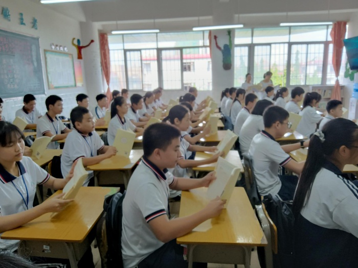 黎佳敏老师一行分别抽取学校两个班级进行国学诵读抽查。检查组先到六年级组进行诵读抽查工作,同学们精神抖擞,坐姿端正,立起书本。随即,琅琅的读书声在教室中传播开来,同学们以铿锵有力的语调,字正腔圆的读音,诵读熟练、顺口,声音清脆悦耳,充分展现了国学经典文化的魅力,同学们精彩的表现得到了工作组的一致认可。