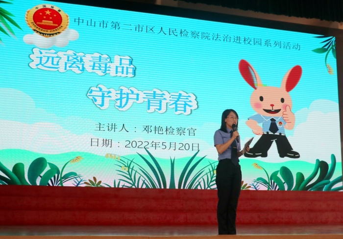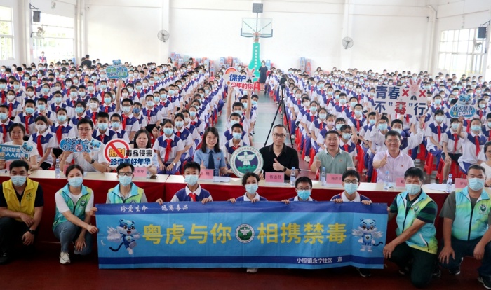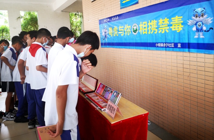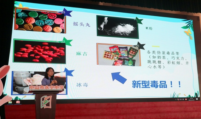 演讲比赛后,永宁中学法治副校长邓艳检察官做了《远离毒品,守护青春》的专题讲座。详细讲解了各类毒品的种类、特点、危害等知识,以真实的案例给同学们以启示。永宁社区禁毒办的社工们更是将“粤虎”带到了活动现场,通过展示毒品模型、摆放禁毒展板、派发禁毒宣传小册子等形式,让同学们更全面直观了解毒品相关知识,正确引导青少年远离毒品。