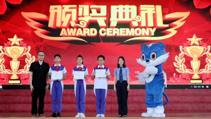 在本次比赛中,一共收到500多份演讲稿,其中张雪柔等50人的演讲稿被评为优秀讲稿,永宁社区团委副书记朱镒文先生为各班获奖代表颁奖。