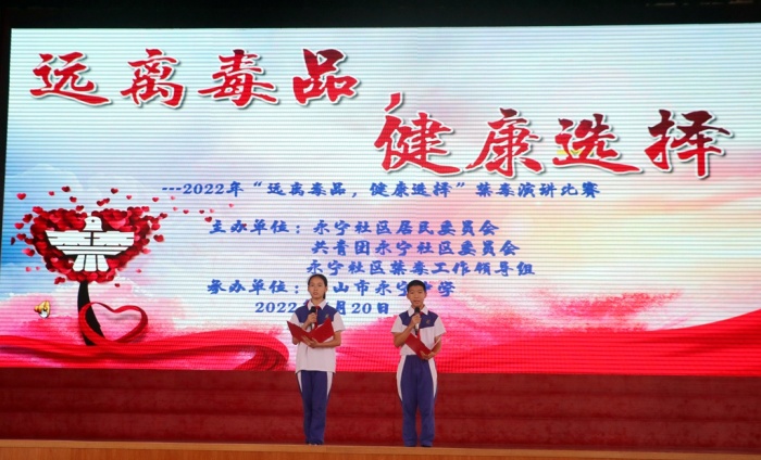 5月20日下午,为了进一步提高在校学生的识毒、防毒与拒毒的能力水平,树立健康向上的生活理念,由永宁社区居民委员会、共青团永宁社区委员会、永宁社区禁毒工作领导小组主办,永宁中学承办的“远离毒品,健康选择 ”禁毒演讲比赛在永宁中学体育馆举行。中山市第二市区人民检察院一级检察官、永宁中学法治副校长邓艳女士、永宁社区党委副书记、纪委书记伍志昌先生、永宁社区社区办公室副主任麦林坤女士、永宁中学党支部副书记杨青华副校长、永宁社区团委副书记朱镒文先生等领导和嘉宾出席本次演讲比赛。