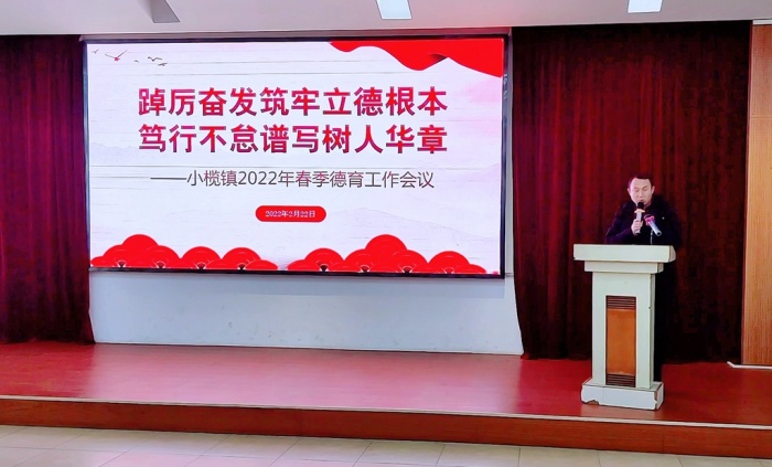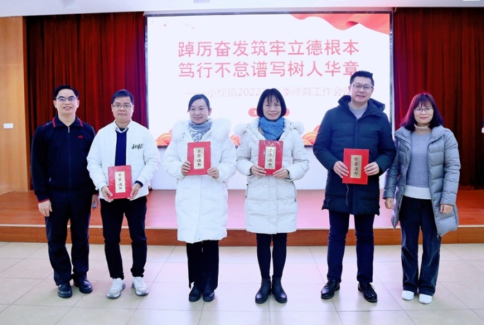 大会第三项议程:小榄镇教育和体育事务中心邓永飞副主任讲话。邓主任从三大方面提出对德育工作的思考:第一深刻认识德育工作的重要性。邓主任从三个方面来理解立德树人的重要性:1.从宏观方面看,育人的根本在于立德,德行成长是全面发展的根本保障,德育是立德树人的首要任务;2.从中观层面看,德育是提升教育教学质量的必然要求;3.从微观层面看,德育是学生健康成长的内在需要。第二紧扣住重点工作,团结努力开创德育新局面。1.邓主任从“聚焦全科渗透”“聚焦校园环境”“聚焦学校差异”的三个聚焦全面具体解析德育重点工作;2.详细阐述了发挥好学校主阵地作用、发挥好家庭基础作用、发挥好社会平台作用;3.要求各单位做好理论与实践相结合、规则约束与习惯养成相结合、弘扬传统文化与现代教育理念相结合。第三是强化组织保障,凝聚德育工作的合力。努力做好:1.结合德育工作笔记,用笔记促发展;2.重视奖惩机制;3.强化管理机制,做到制度管人;4.强化德育队伍建设,用好现代科技技术,减少没必要的劳动;5.发挥好考评评价导向的作用。