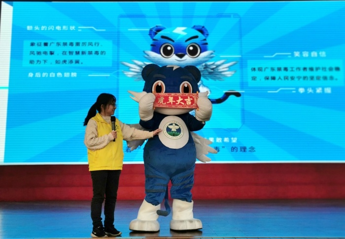在课堂上,小榄镇禁毒社工们通过发放禁毒宣传手册、展示禁毒仿真模型、知识问答互动等方式,向学生讲解毒品的种类、危害,以及如何防范毒品侵害等,特别针对当前出现的经过伪装的新型毒品作了详细讲解,并指导学生如何快速识别伪装的毒品,增强防范意识。同时,结合案例,深入浅出地讲解禁毒相关的法律法规。期间,特别邀请了广东禁毒形象大使——“粤虎”现场,让学生们认识,希望师生们在“虎年”即将来临之际,“虎”年大吉,拒绝“毒”诱。活动现场气氛热烈,每位学生积极主动参与互动,积极回答禁毒知识问答,专心投入到禁毒课堂当中,收获满满的毒品预防教育知识。最后,由禁毒民警带领全体师生进行禁毒宣誓,誓言铿锵有力量,也是永中师生们禁毒防毒的庄严承诺!