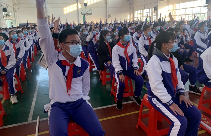 2021年即将进入尾声,在元旦来临之际,为深入推进青少年毒品预防教育,进一步加强校园禁毒宣传力度,提高青少年学生识毒、防毒、拒毒意识,12月29日下午,小榄镇禁毒办联合永宁社区、永宁中学在学校体育馆开展“迎元旦 不‘毒’行”为主题的禁毒宣传活动。永中全体初一年级师生530多人参加活动。