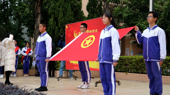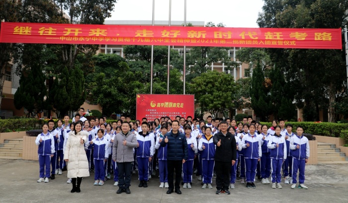 12月28日上午,为深入学习贯彻党的十九届六中全会精神,推动党史学习教育进一步走深走实,引导广大团员青年自觉从党的光辉历史中汲取砥砺奋进的精神,永宁中学在学校运动场举行“继往开来,走好新时代赶考路”——中山市永宁中学学习贯彻十九届六中全会精神暨2021年第二批新团员入团宣誓仪式,全体师生共1500多人参加了本次活动,活动由校团委副书记陈焕然主持。