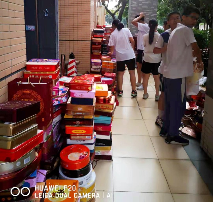 在整个“月饼盒回收活动周”中,永中全校师生和家长们积极参与,学生代表在国旗下讲话进行动员,各班召开主题班会发动学生积极参与,大力宣传“绿色学校”的环保理念和月饼盒回收的意义,让学生们纷纷把家中闲置的月饼盒带回学校,踊跃支持环保事业,志愿者们认真细致地指导各班同学有序整理摆放,不怕苦、不怕累。本次活动共回收月饼盒2809个,所得款项720元将专款用于永中志愿银行的公益活动。