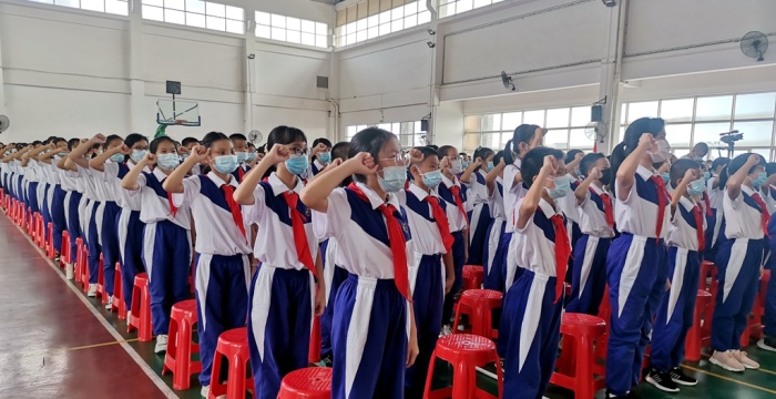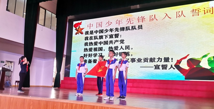 接着,由罗结晶副主任带领初一年级全体学生重温入队誓词:“我是中国少年先锋队队员,我在队旗下宣誓:我热爱中国共产党……”。嘹亮的誓词,坚定的决心,再次深深植入孩子们的心灵。
