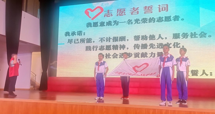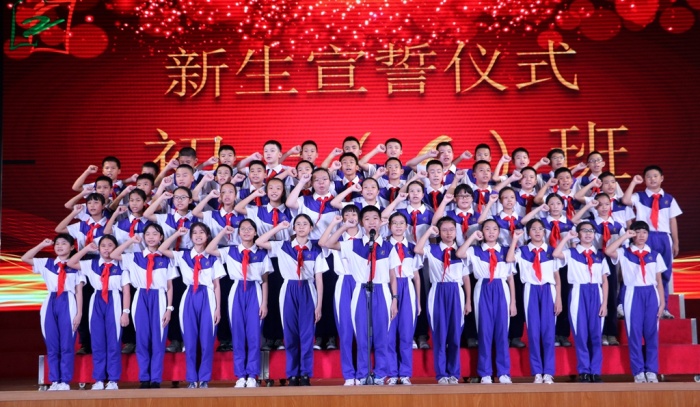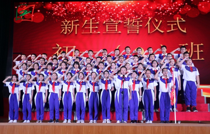 最后,初一年级10个班级学生分别进行了新生入学宣誓仪式和志愿者宣誓仪式。宣誓仪式,让新初一的少先队员们更加明确学校规章制度,更加清晰自我奋斗目标和作为一名志愿者的光荣承诺。
