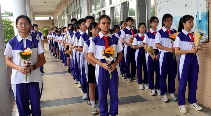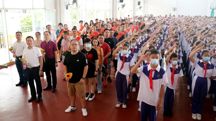 活动在雄壮的国歌声拉开序幕,学生代表满怀诚挚与喜悦把优秀校友赠送的美丽鲜花献给尊敬的老师们,孩子们稚嫩的笑脸和敬礼,让每位老师都真切地感受到了学生们浓浓的情意和敬意,鲜花凝真情,芬芳谢师恩。
