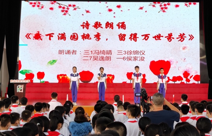 接着,少先队员和团员代表向老师们献词,深情朗诵《载下满园桃李,留得万世芬芳》。情真意切,令人动容,学生们的深情颂恩令老师们脸上洋溢着发自内心的、难以自抑的激动和幸福。
